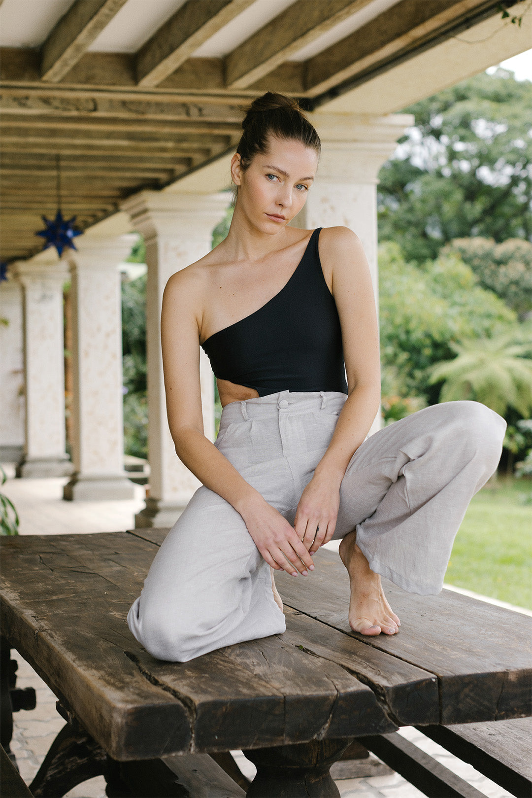 Vestido de baño con un diseño moderno en licra italiana con efecto brillante, confeccionado con un diseño ideal para ser utilizado como prenda exterior. Proporciona versatilidad y la posibilidad de ser usado en diferentes ocasiones.