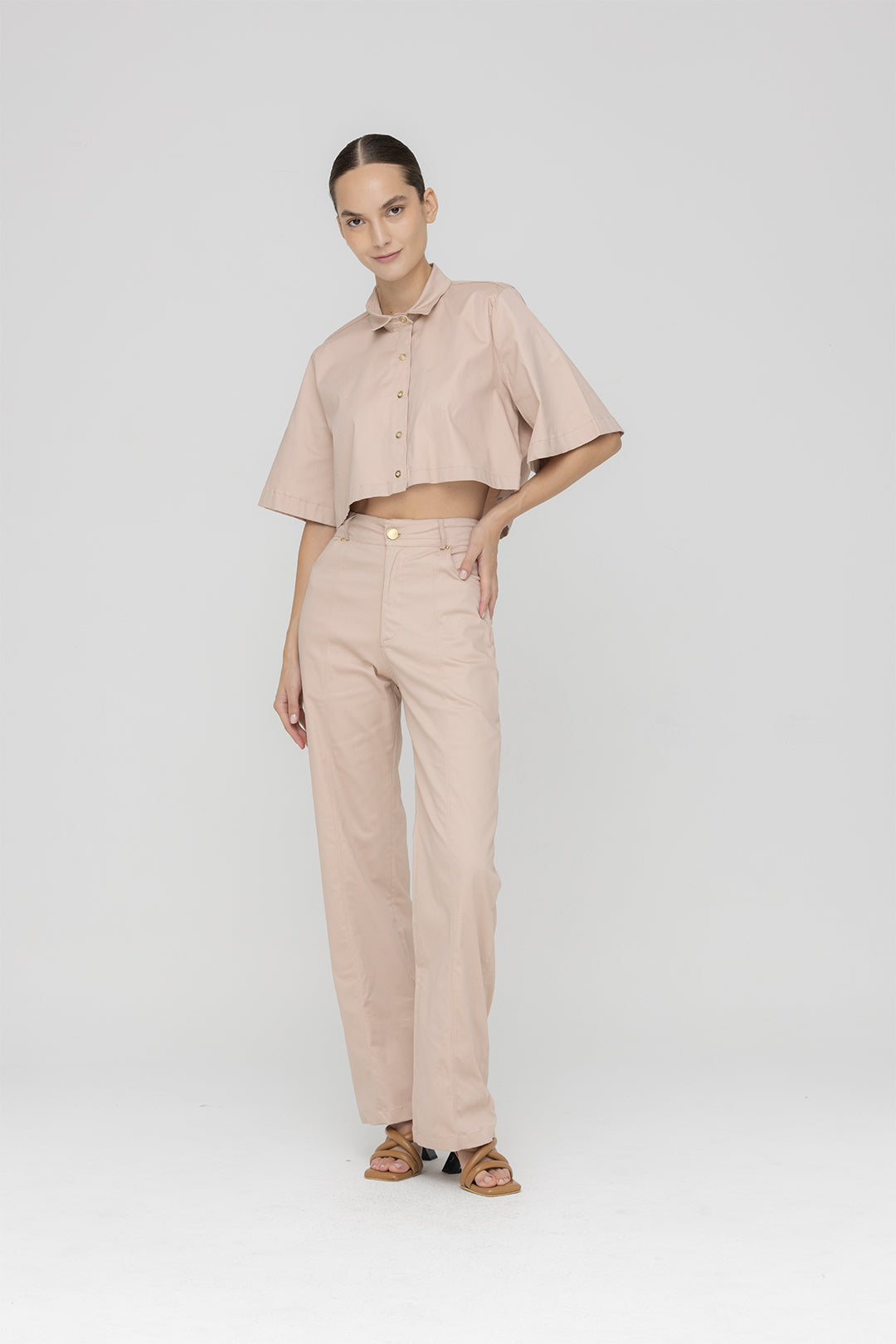 Set dos piezas en Drill compuesto por pantalón tiro alto y chaleco .