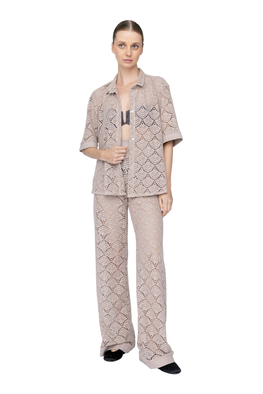 Presentamos nuestro conjunto Brizzi de dos piezas, elaborado en tela de encaje, que combina comodidad y estilo. Este conjunto incluye una camisa y un pantalón de tiro alto, que ofrece un ajuste confortable y control en el abdomen, gracias a su pretina ancha de rib que puede doblarse para lograr un look más corto. Son ideales para esta temporada de viajes y pueden utilizarse de forma independiente, brindando versatilidad y funcionalidad.